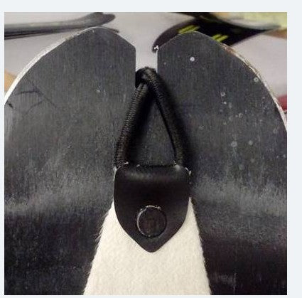 Skin Attachment Quick Race: Skin is hooked into the notch of the ski tip with a tip tensioner at the front