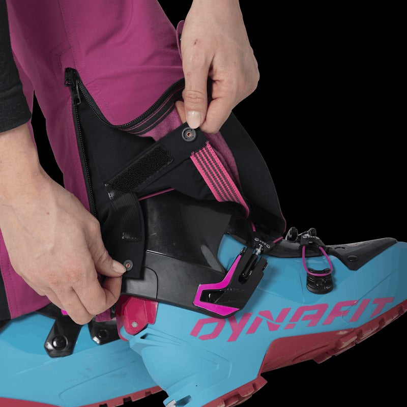 These light, wind-resistant and yet durable Mercury Dynastretch Pants for women are the perfect choice for classic ski touring enthusiasts. These softshell pants of stretch nylon are a bestseller in the DYNAFIT Collection, enjoying huge popularity in the ski touring community for many years. These pants are made of a very breathable and durable Dynastretch™ fabric and is wind- and water-resistant. They move with you and offer impressively high comfort. Side zipper vents and integrated gaiters make these pants your reliable companion in any weather. A zipper allows you to expand the leg openings so the pants fit over most ski touring boots on a climb. In addition, the Mercury Pants have edge guard reinforcements at the leg for extra durability. The waist can be adjusted with side hook-and-loop closure fasteners to personalize your fit. Mercury Dynastretch Pants – The popular ski touring tradition.